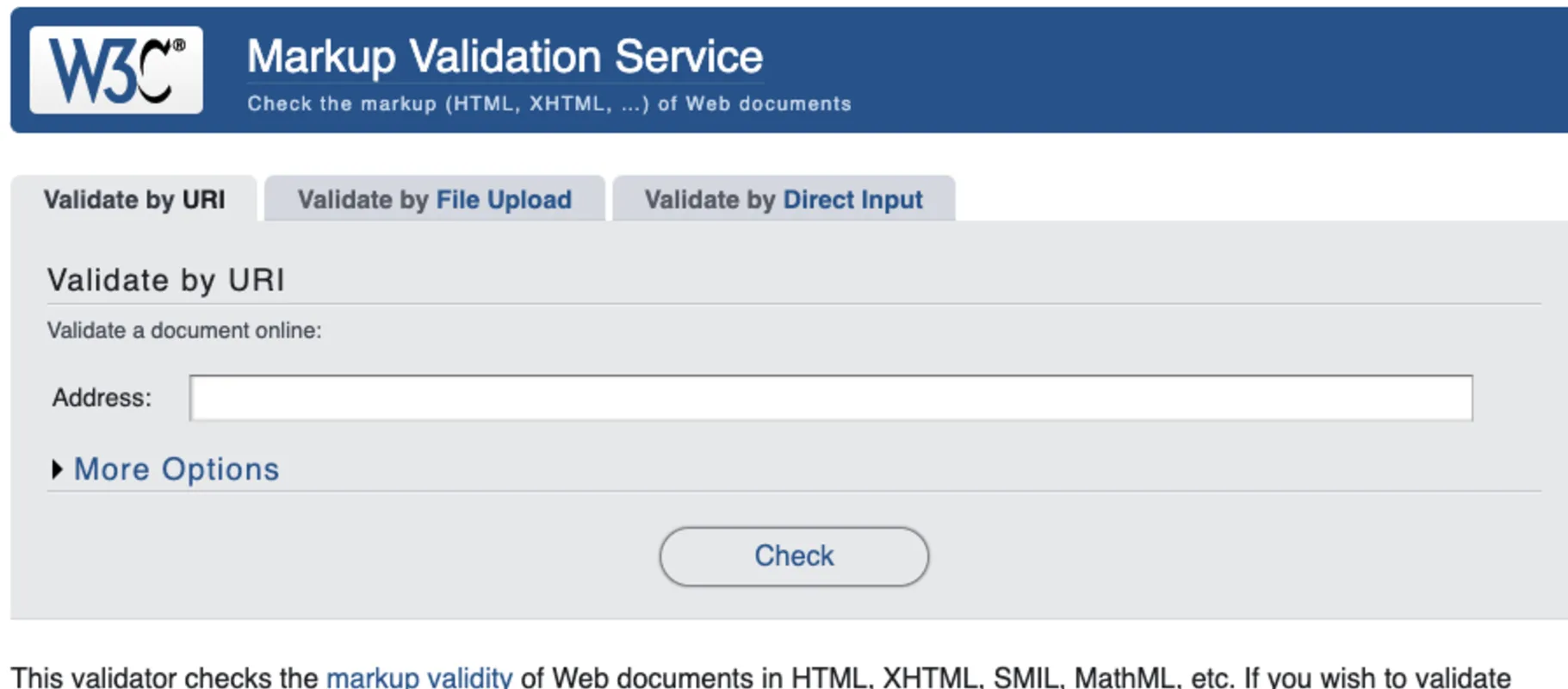 w3c validator 은 소스파일 또는 url을 확인하여 브라우저에 제대로 표현되고 있는지 마크업에는 오류가 없는지를 확인해주는 사이트입니다. 이번, 블로그 프로젝트를 진행하면서 점점 컴포넌트가 많아지면서 해당 마크업이 맞는지 확인하는 과정이 까다로웠는데 해당 사이트를 통해 마크업의 오류를 점검할 수 있었습니다.