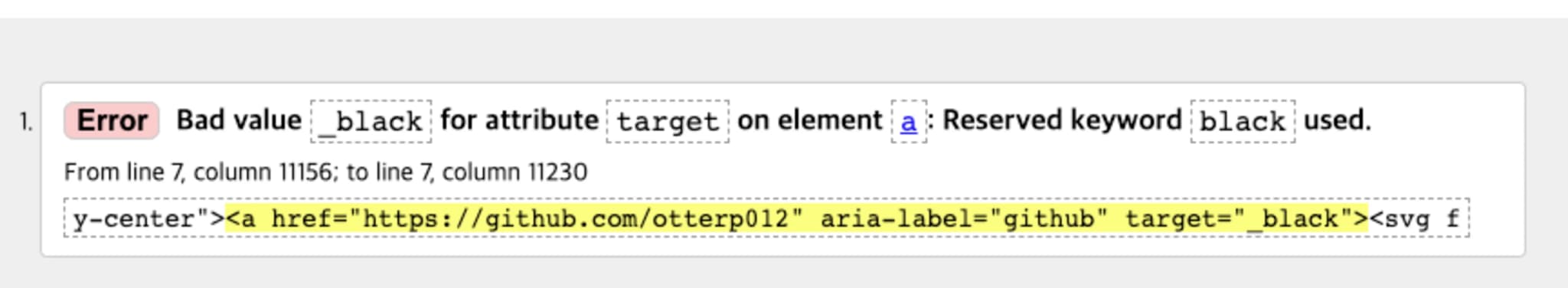 깃허브 Icon 컴포넌트 태그에서 오류가 발생했습니다. 민망하게도 오타가 있었기 때문입니다. _black 를 blank 로 수정했습니다.